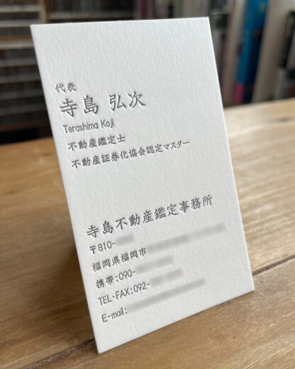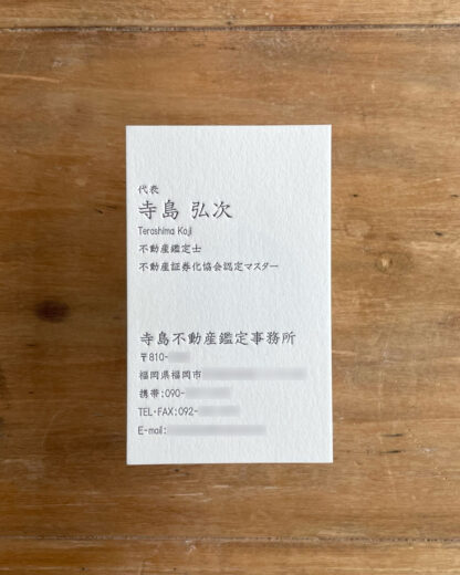 活版印刷 箔押し オンデマンド印刷 トムソン(型抜き) プランニング・ディレクション デザイン制作 活版印刷・名刺 / ショップカード 寺島不動産鑑定事務所様 活版名刺 client:寺島不動産鑑定事務所様 product:活版名刺 Data:紙:特Aクッション/印刷:活版印刷/インク:片面1色・黒 ← 前へ 一覧に戻る 次へ → 制作事例 名刺 / ショップカード ポストカード / DM 洋服タグ / ラベル カレンダー / 年賀状 その他 ピックアップ情報 活版名刺の注文 印刷に関して 日高印刷で出来ること 用紙・インクの種類 制作事例 制作物のご紹介 ご利用について 活版名刺の注文 ご注文の流れ 特定商取引法に基づく表記 プライバシーポリシー 会社情報 お知らせ 日高印刷について 活版印刷を体験してみませんか 年末年始休業のお知らせ